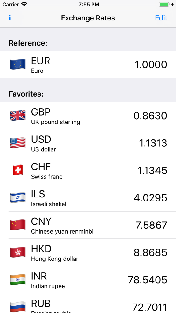 ECBCurrencies simply lets you do currency calculations between any pair of currencies of your choice. No more standing in a tourist gift shop and guessing helplessly the cost of some nice souvenir …